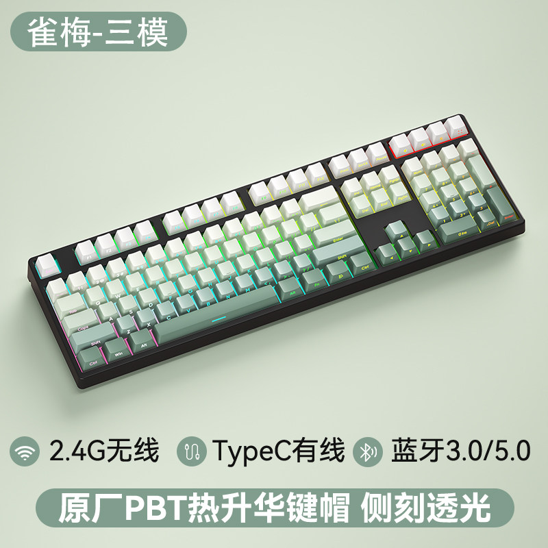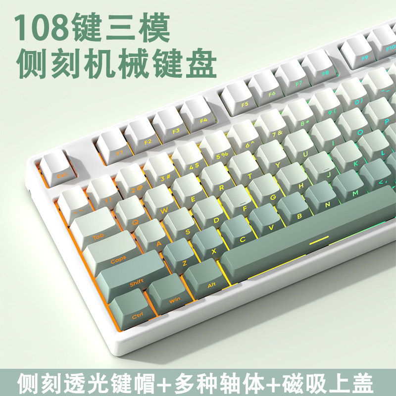 机械键盘108键无线三模蓝牙侧刻客制化静音水蜜桃轴套件打字办公