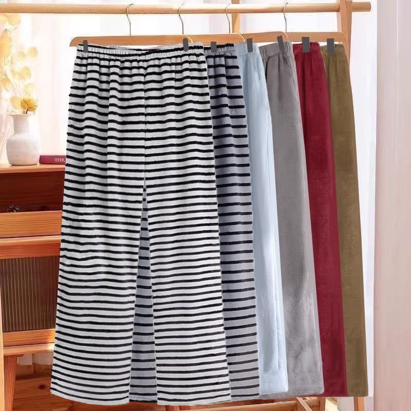 条纹爆款暖暖裤女秋冬学生直筒裤保暖休闲居家裤小个子睡裤珊瑚绒