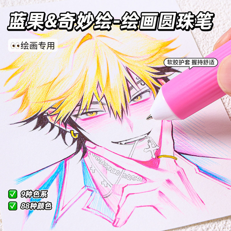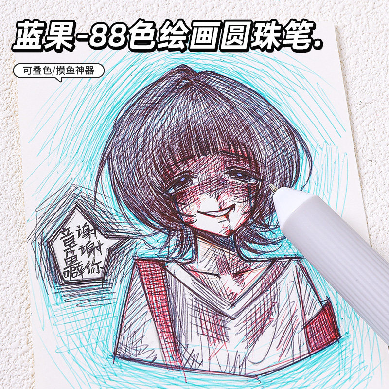 蓝果88色软握圆珠笔新色3.0绘画专用官方正品多色彩色中性笔摸鱼绘画按压式10色合一多功能手账笔0.8mm高颜值