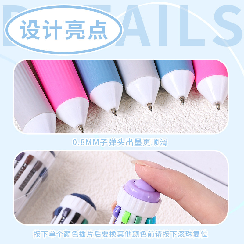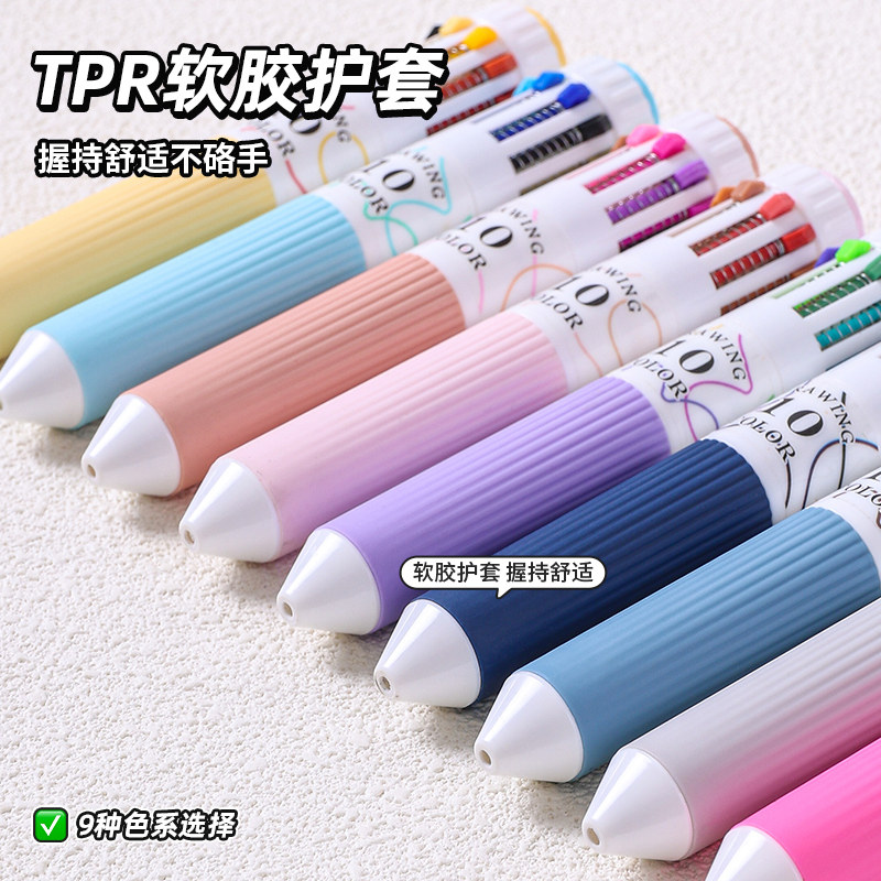 创意卡通多色签字笔可爱按压十色圆珠笔学生奖励实用礼品小奖品