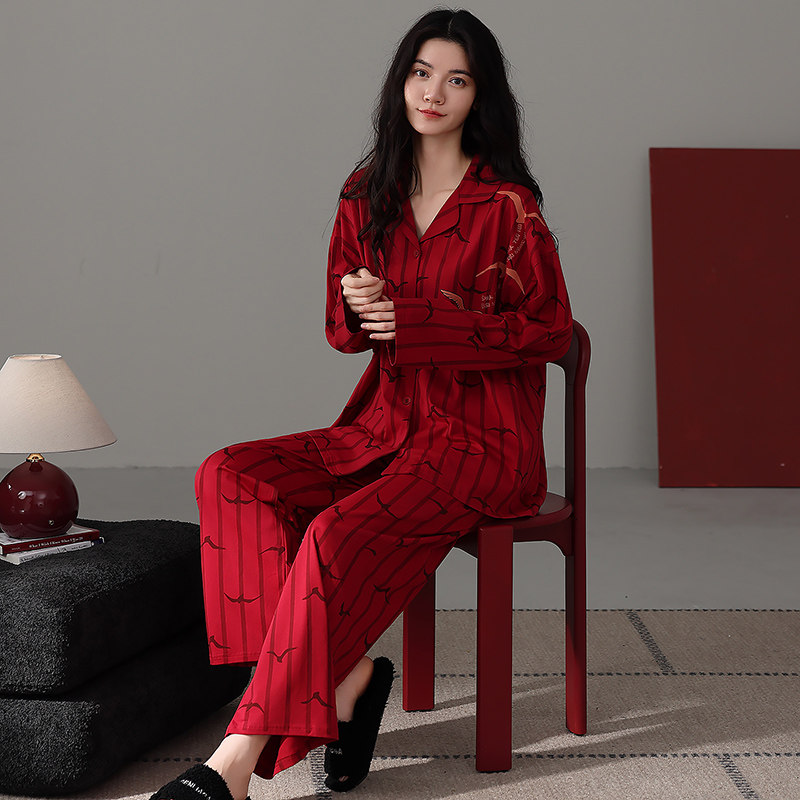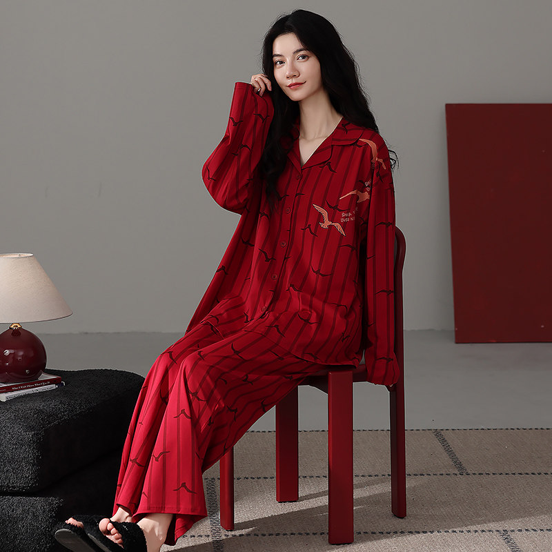浪莎2025年新款睡衣女款春秋季纯棉长袖家居服秋冬薄款高级感套装
