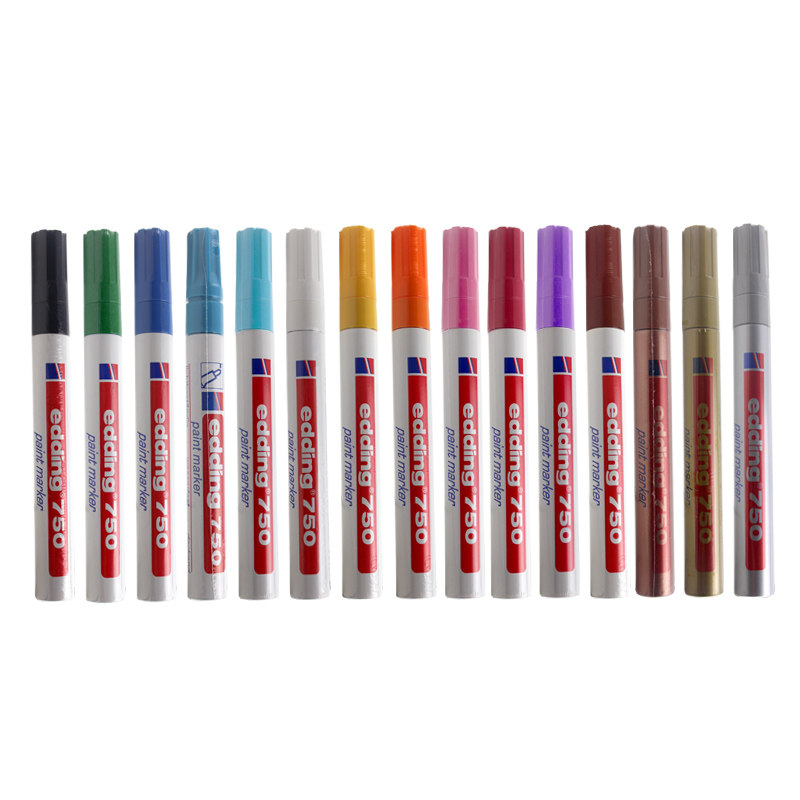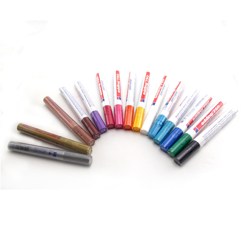 德国艾迪edding750油漆笔中字2MM耐酒精耐高温油性笔汽车金属配件补漆笔黑色白色不掉色玻璃陶瓷工业记号笔