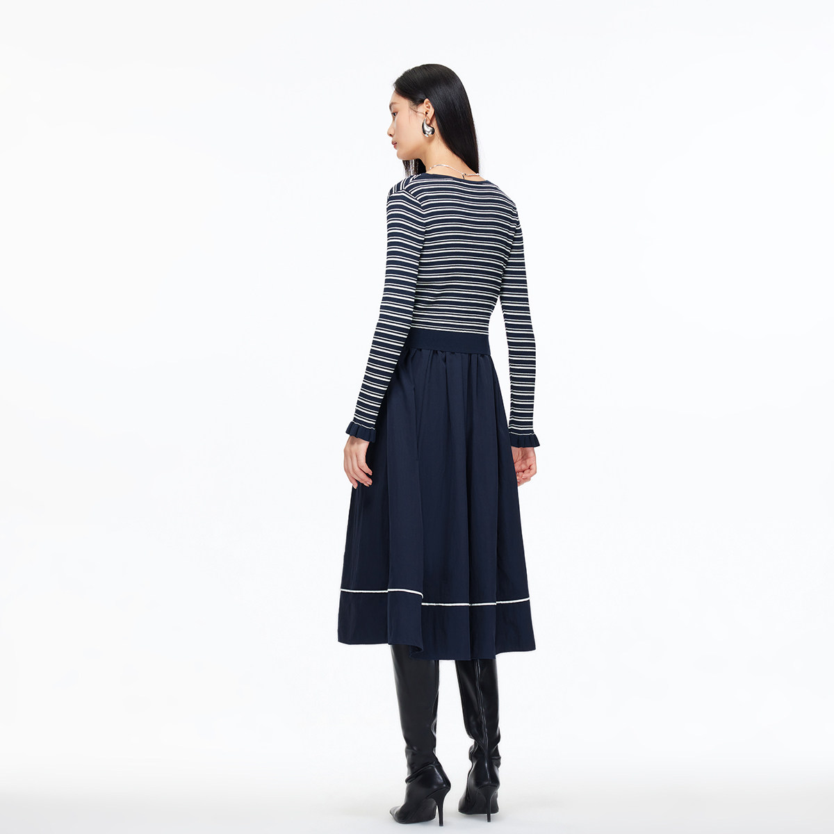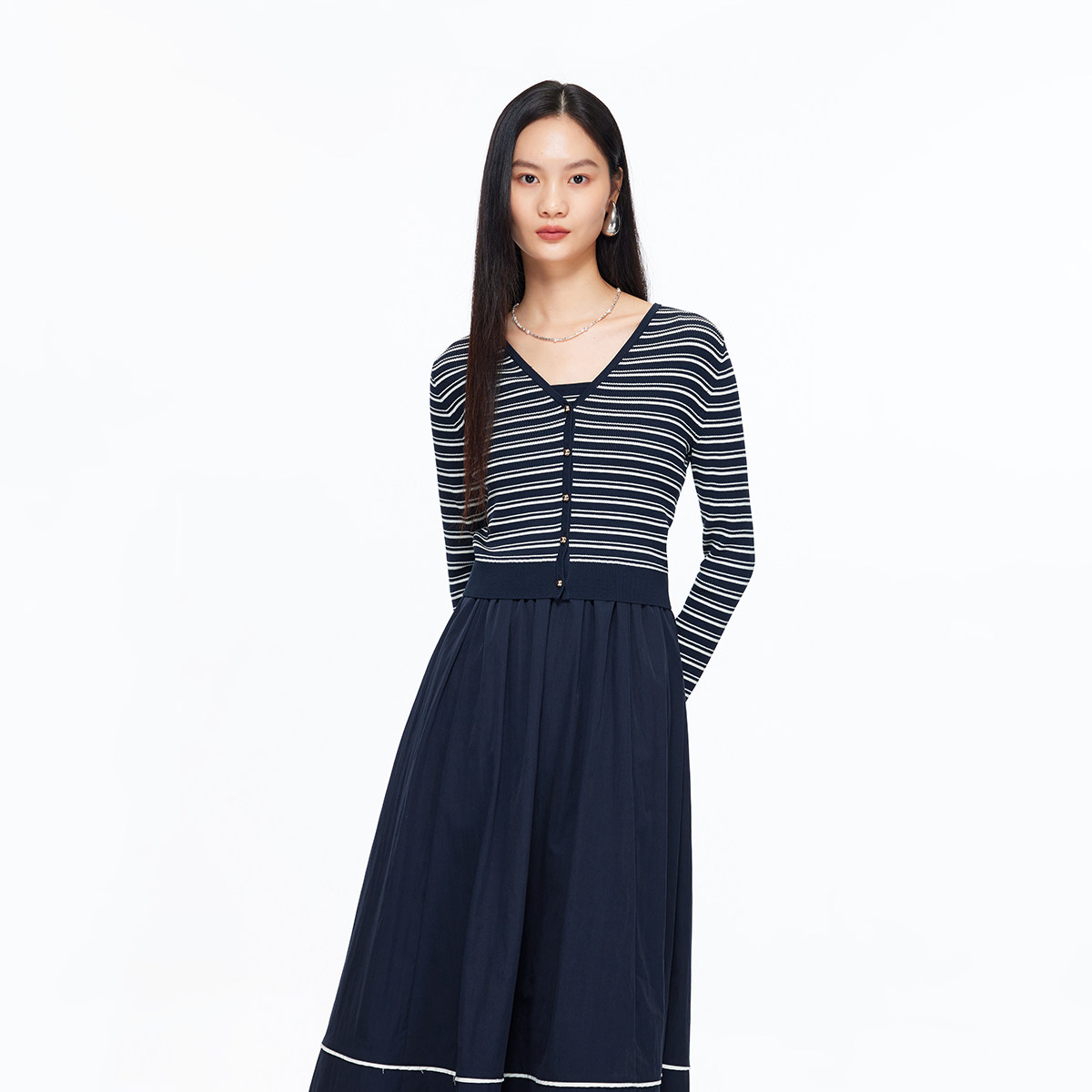 Vero Moda连衣裙女2025冬季新款条纹套装A字中长裙325446022