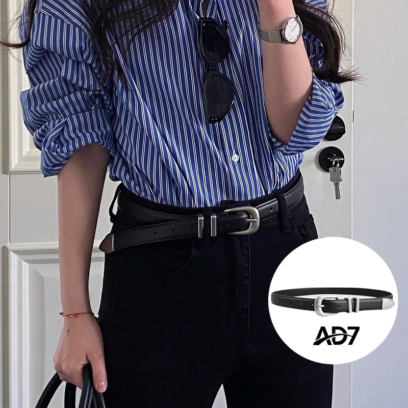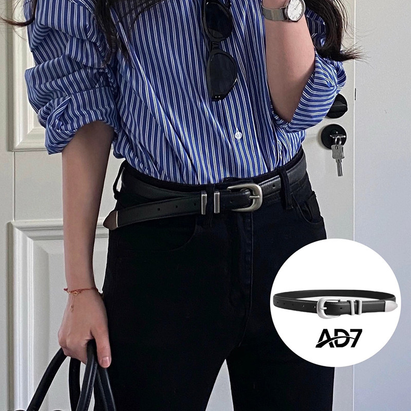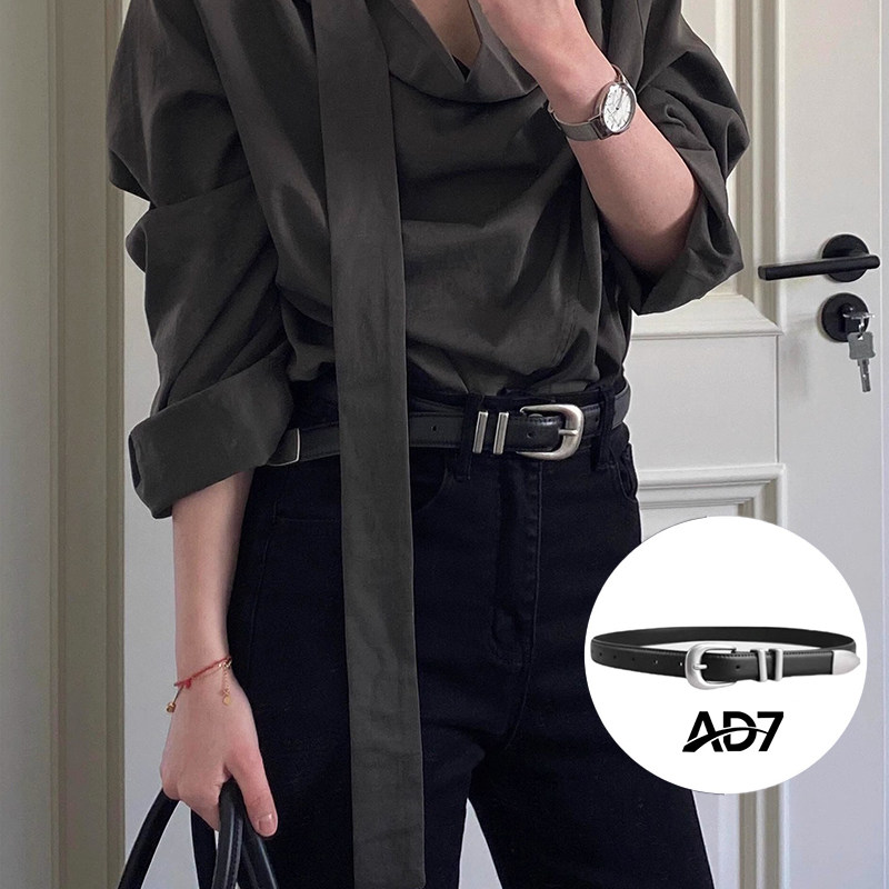 复古腰带真牛皮银色金属扣头精细封边纯牛皮男女新款百搭休闲皮带