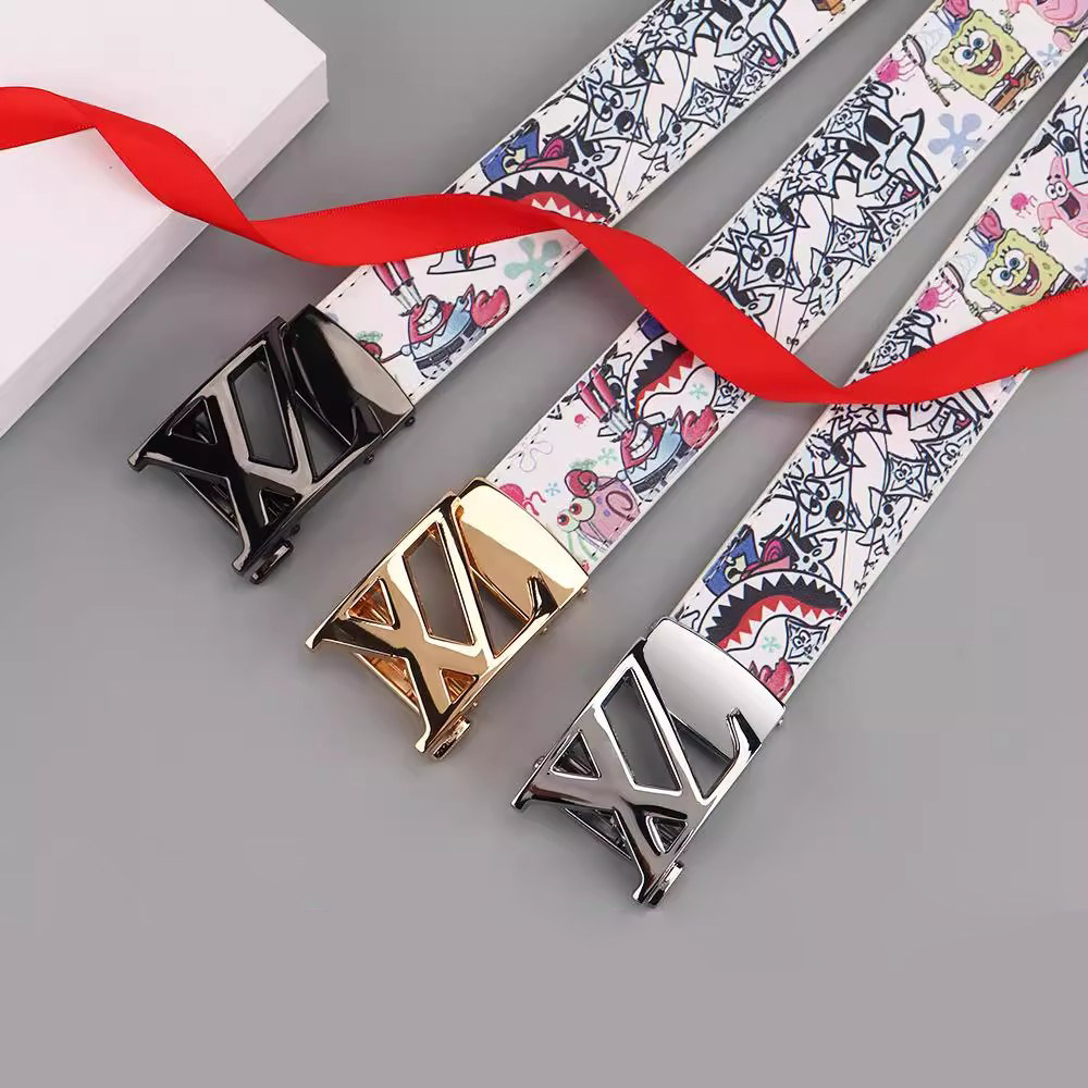 新款潮流男士皮带真皮百搭字母涂鸦自动扣学生腰带牛仔裤潮流网红