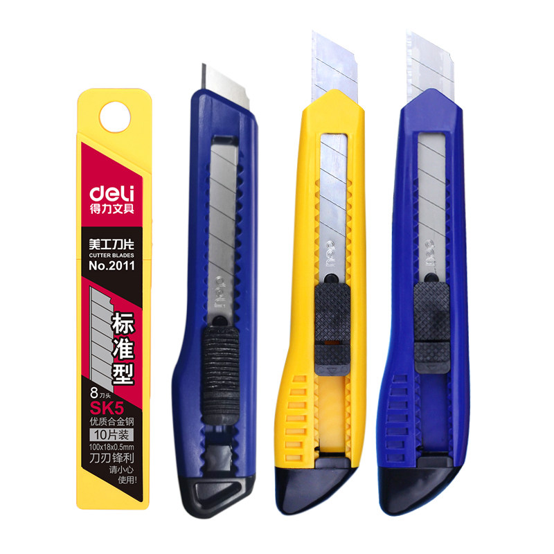 得力美工刀办公文具裁纸刀壁纸刀工具刀刀架多功能拆箱刀子开箱器美工刀片18mm大号刀片