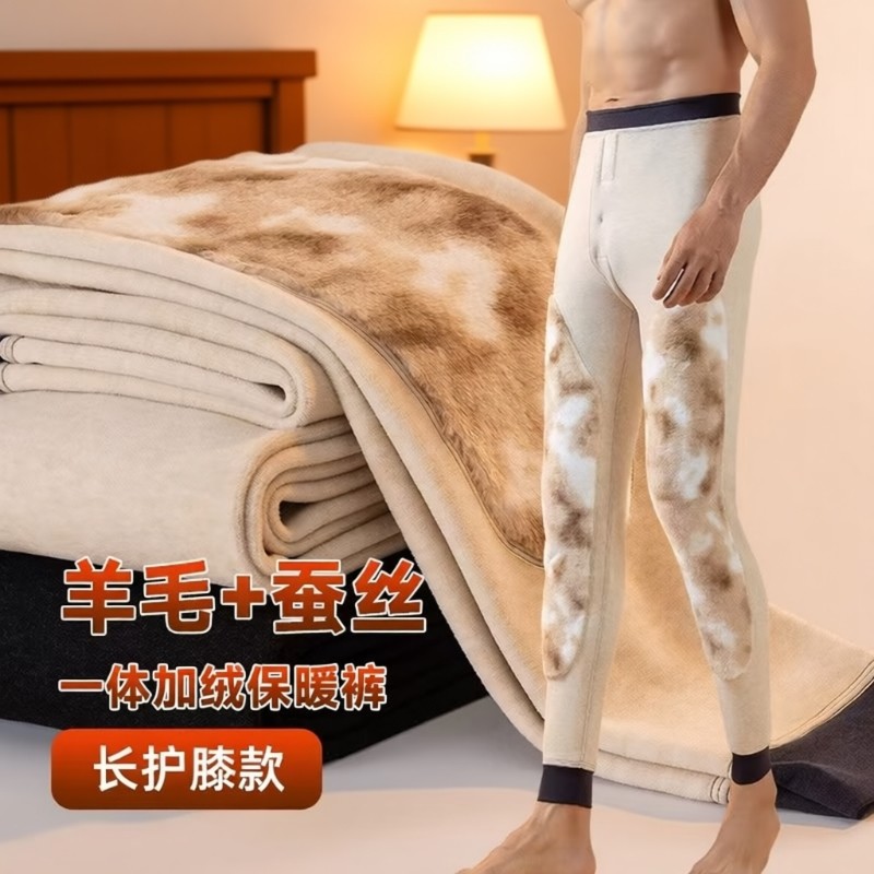 羊毛蚕丝护膝保暖秋裤男士内穿冬季加绒加厚青年大码打底特厚棉裤