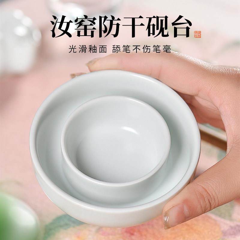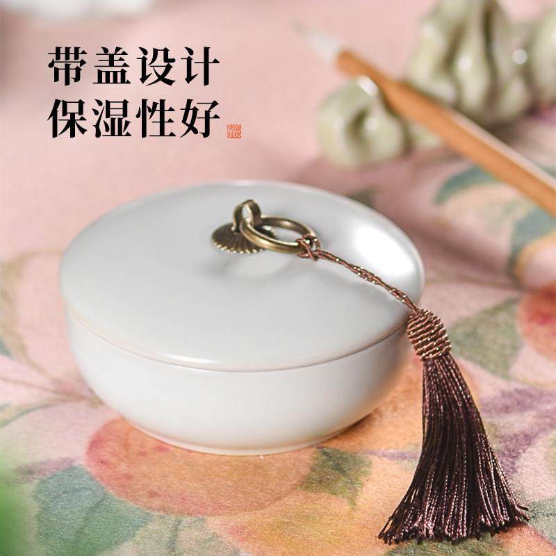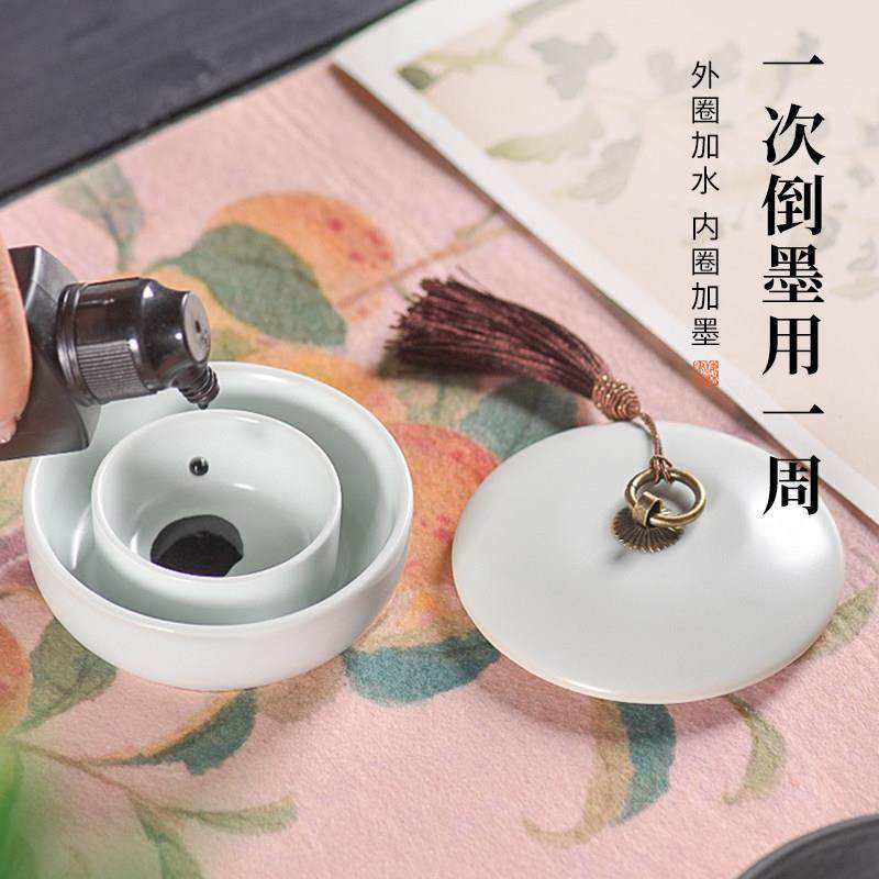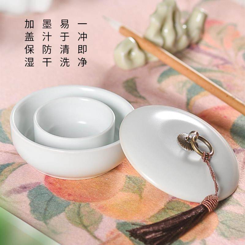 梅林笔庄陶瓷火锅砚台带盖书法墨盒墨碟毛笔墨汁砚台不干墨书法专
