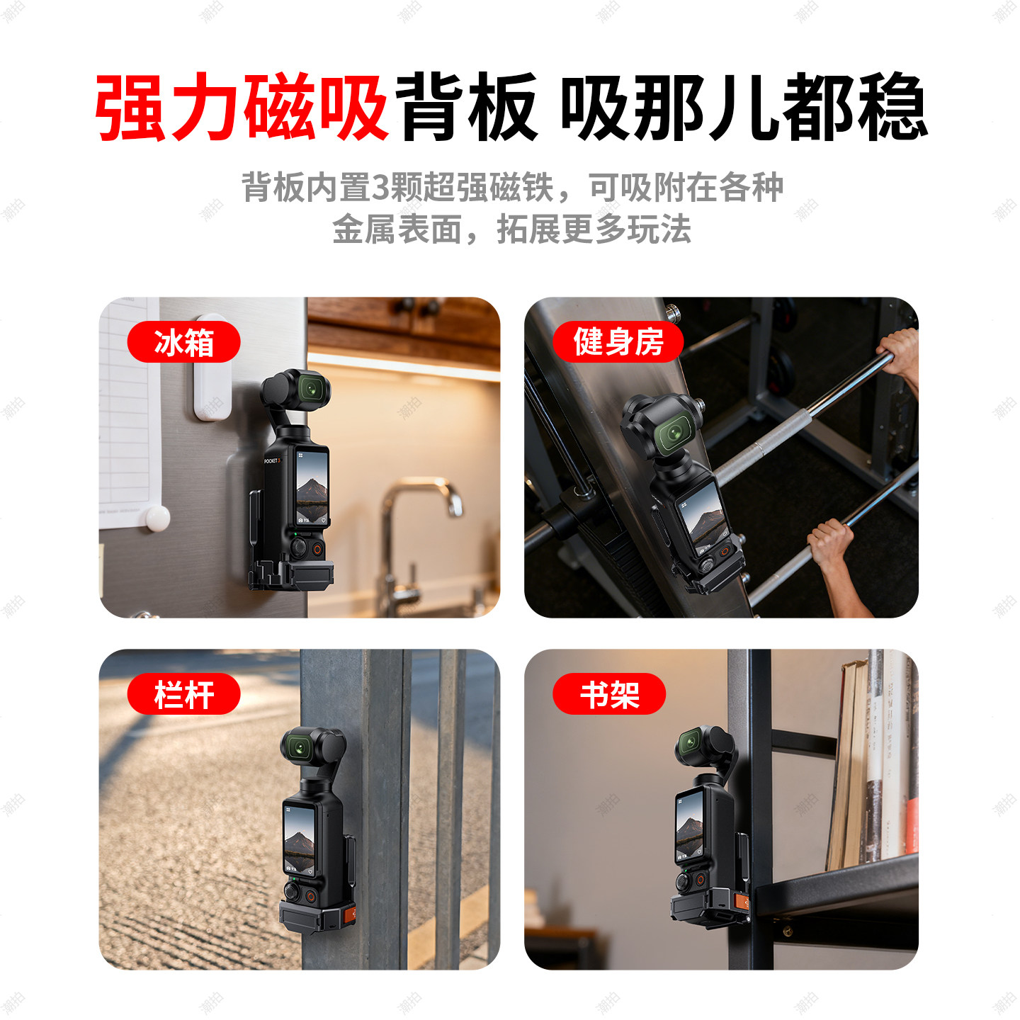 潮拍适用大疆pocket3磁吸支架底座汽车吸盘多功能OSMO口袋相机桌面固定车载吸盘兔笼保护边框拓展底座配件