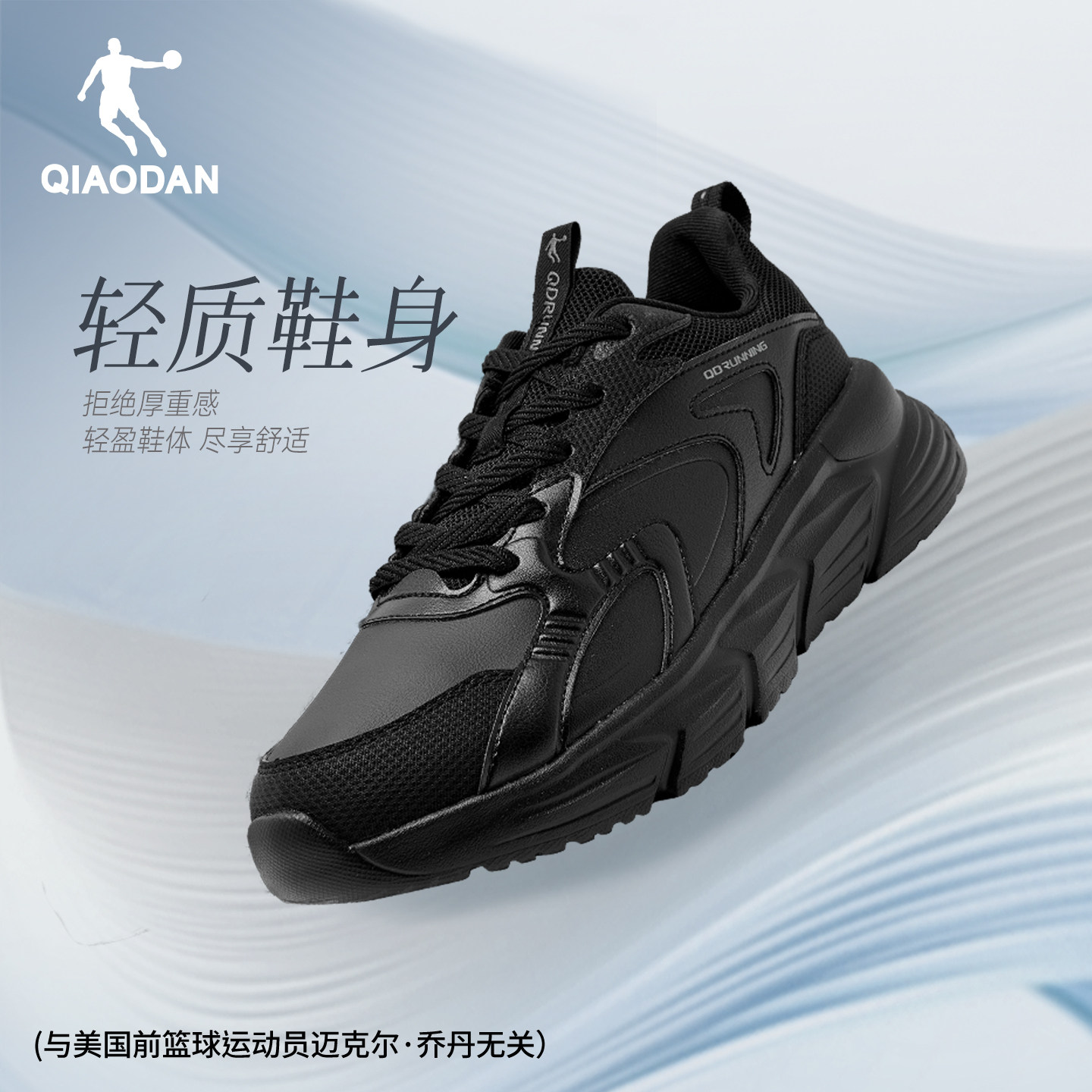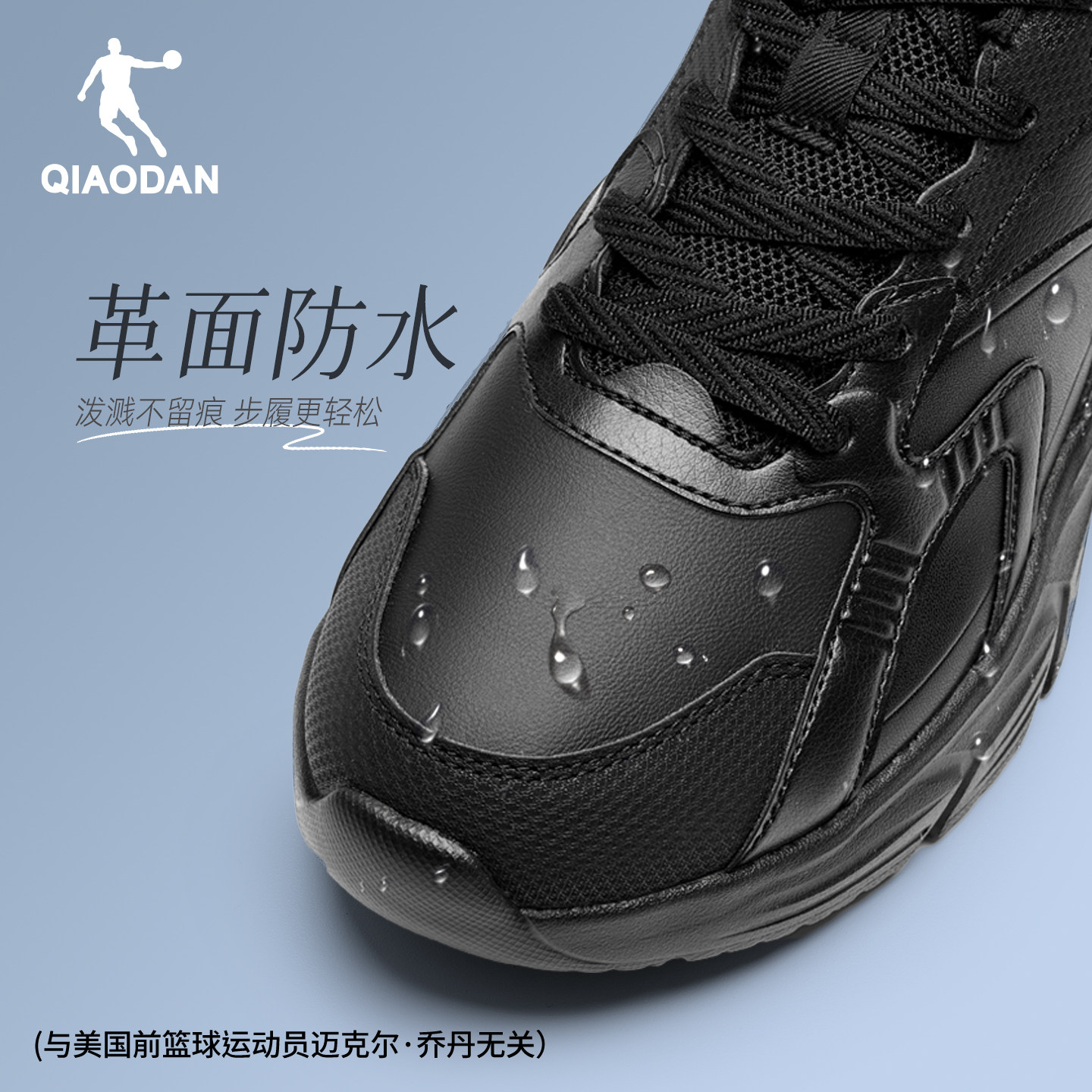 乔丹冬季皮面加绒防水运动鞋男鞋跑步鞋减震轻便软底黑色爸爸跑鞋