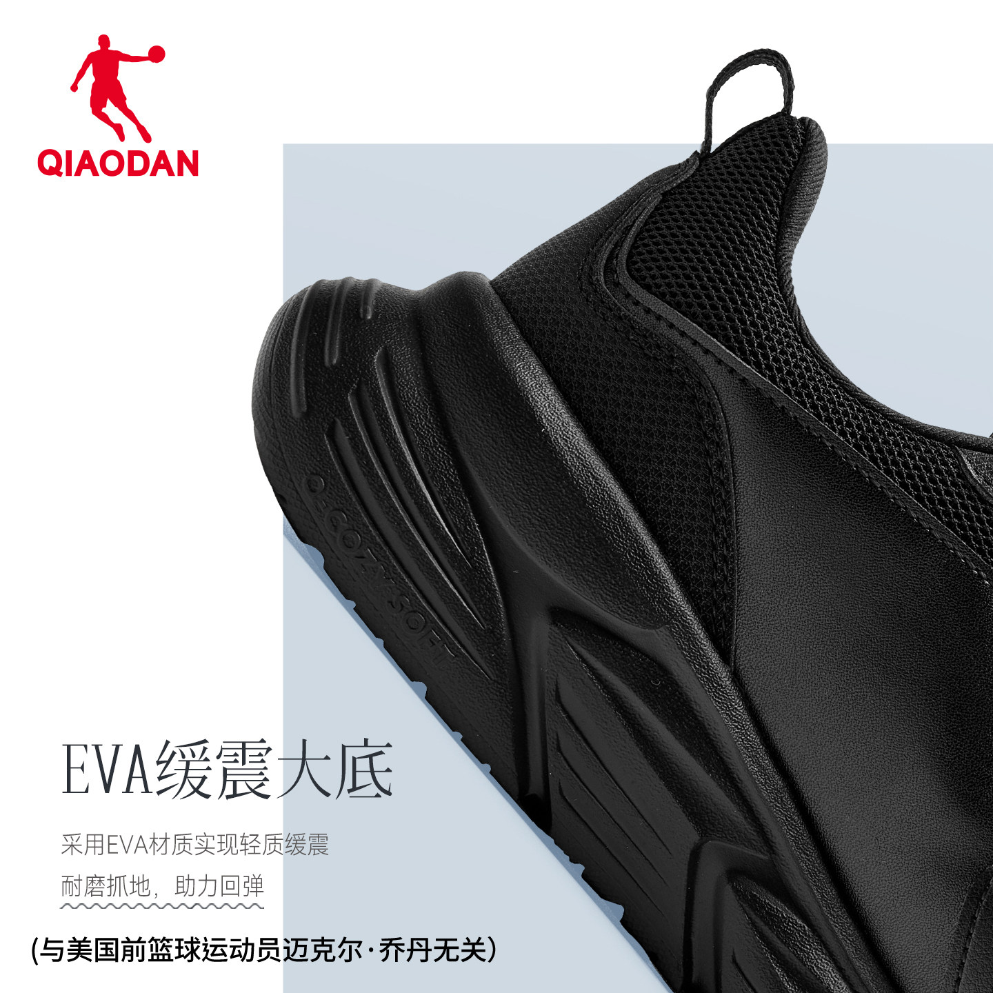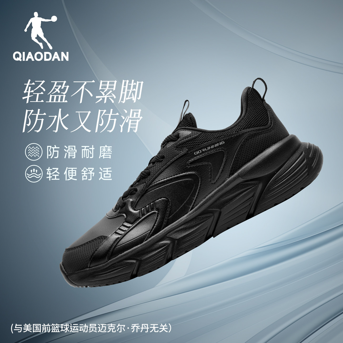 乔丹软底运动鞋女黑色皮面跑步鞋新款秋冬季防水轻便妈妈休闲鞋子