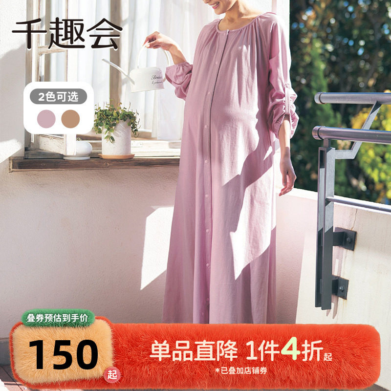千趣会孕妇装春秋款连衣裙宽松舒适居家睡裙产后方便哺乳长裙
