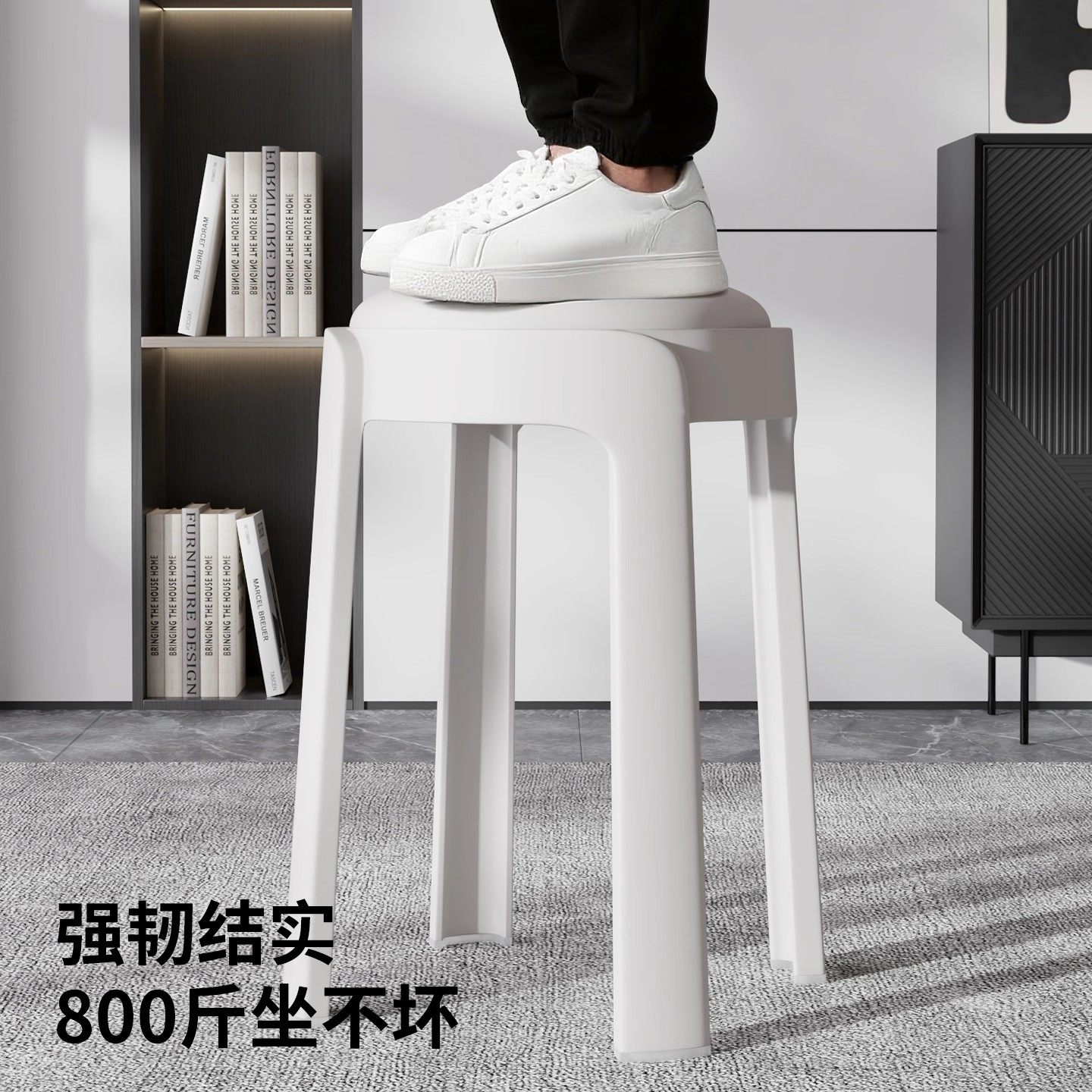 塑料可叠放凳子家用结实耐用客厅圆凳轻奢高级感软包皮革旋风凳子