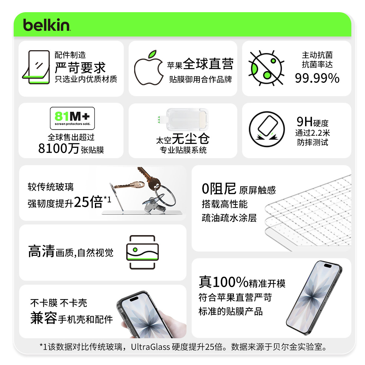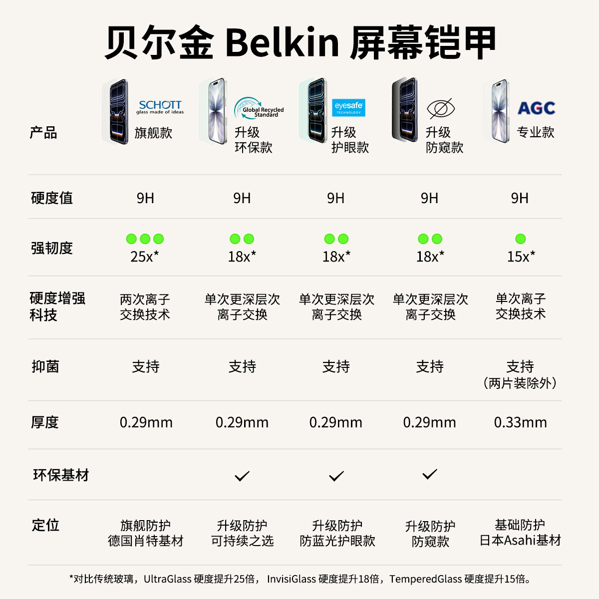 Belkin贝尔金适用苹果iphone17promax 钢化膜手机防窥贴膜新款17pm防蓝光护眼防指纹防摔屏幕高清全屏AR贴膜