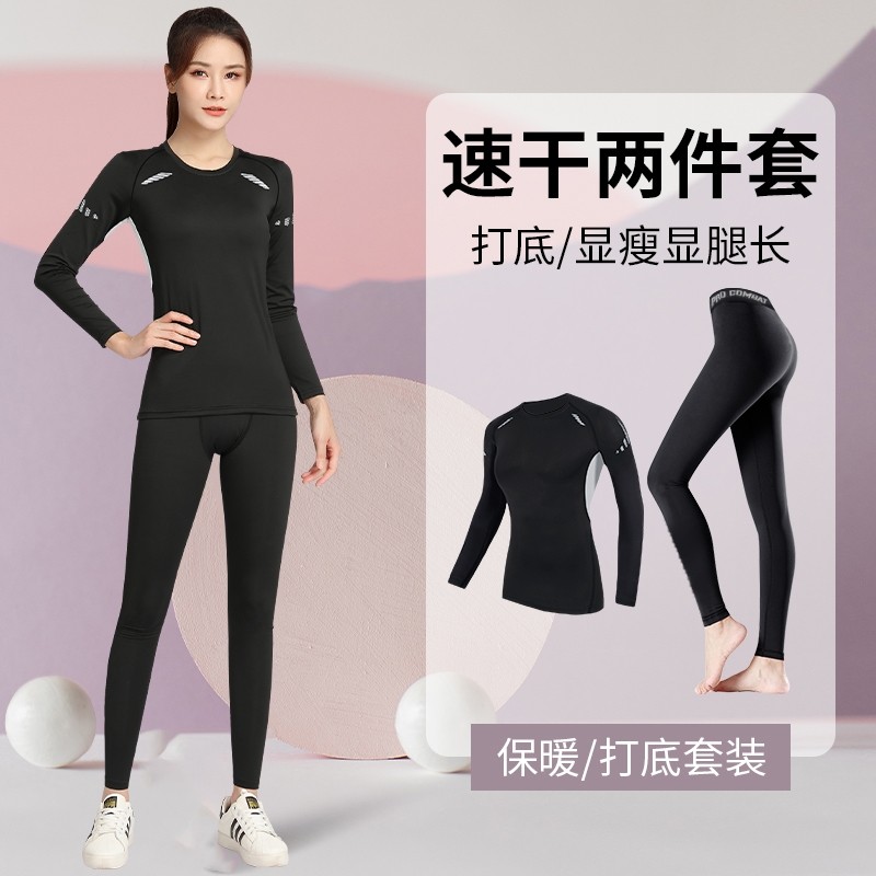 速干衣女长袖滑雪跑步健身运动套装紧身瑜伽服训练登山户外打底裤