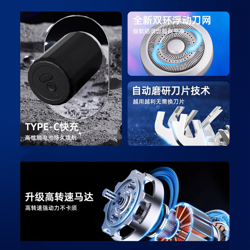 博锐剃须刀电动男士刮胡刀胡须刀刮胡子刀快充便携水洗礼物正品