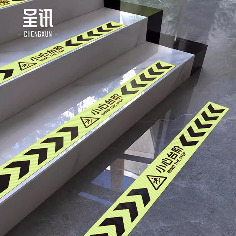 小心台阶小心地滑耐磨地贴夜光地面楼梯反光防滑条地标提示贴防水警示牌标识贴指示牌告示户外标志贴纸
