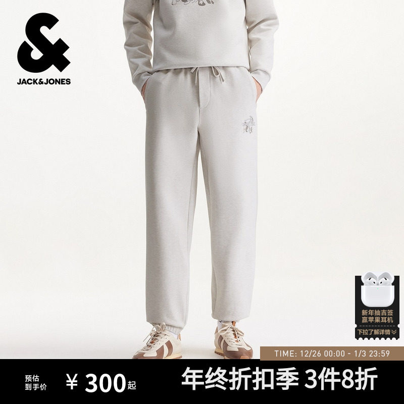 杰克琼斯男装秋季卫裤纯色日常宽松松紧字母刺绣裤脚收口长裤裤子