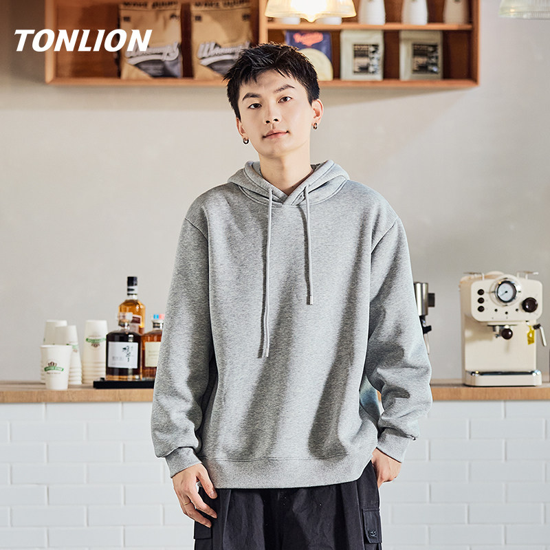 唐狮连帽卫衣男2025新款春秋季美式重磅男士基础款纯色长袖外套HW