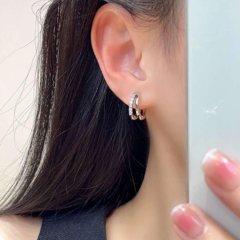 双层镶钻耳环设计感耳圈女士2025新款爆款高级感轻奢圈圈素圈耳饰