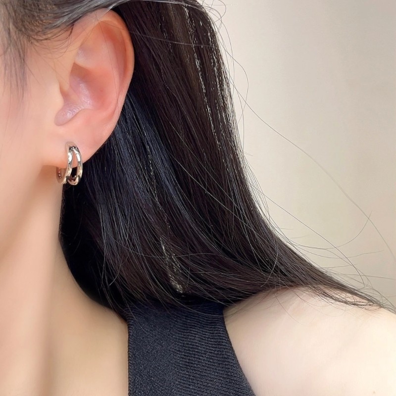 银色素圈耳环2025新款爆款轻奢高级感气质独特耳圈女耳钉圈圈耳饰