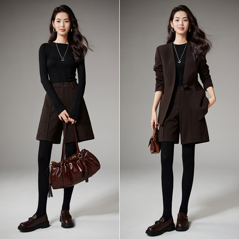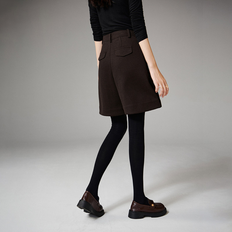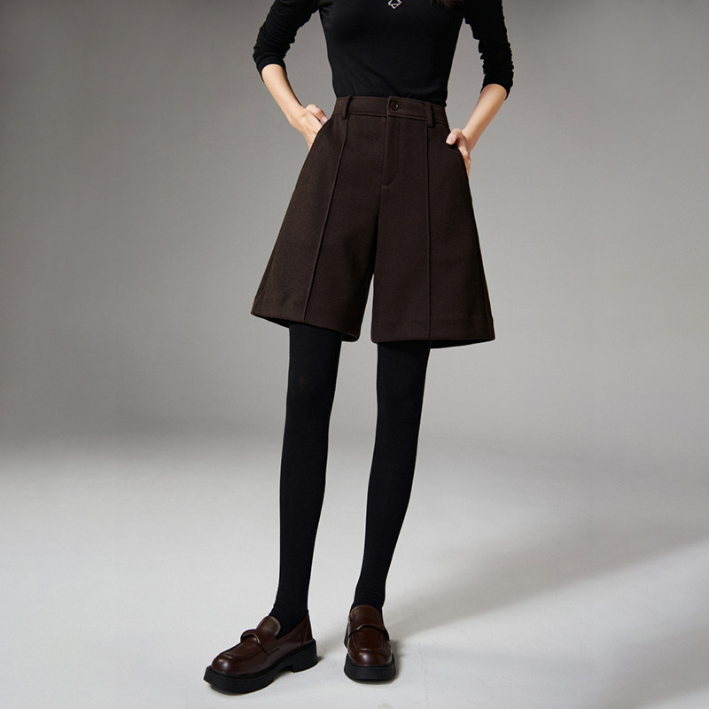 晚白2025年冬新款气质高腰立体分割短裤靴裤裤子毛呢百搭休闲裤女