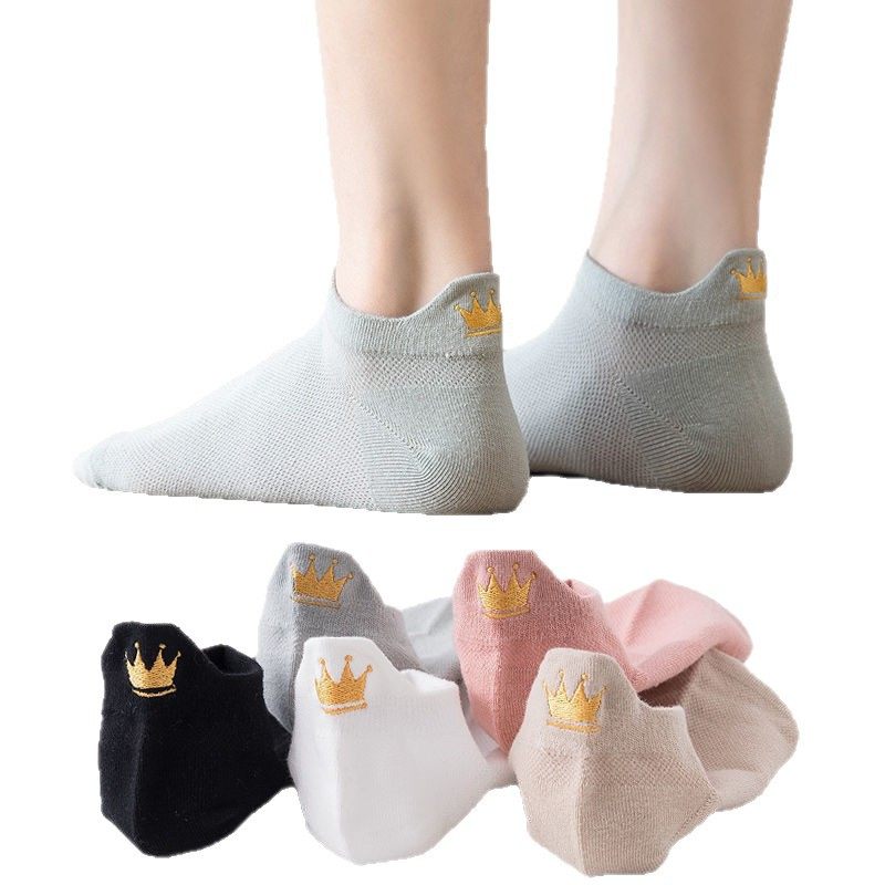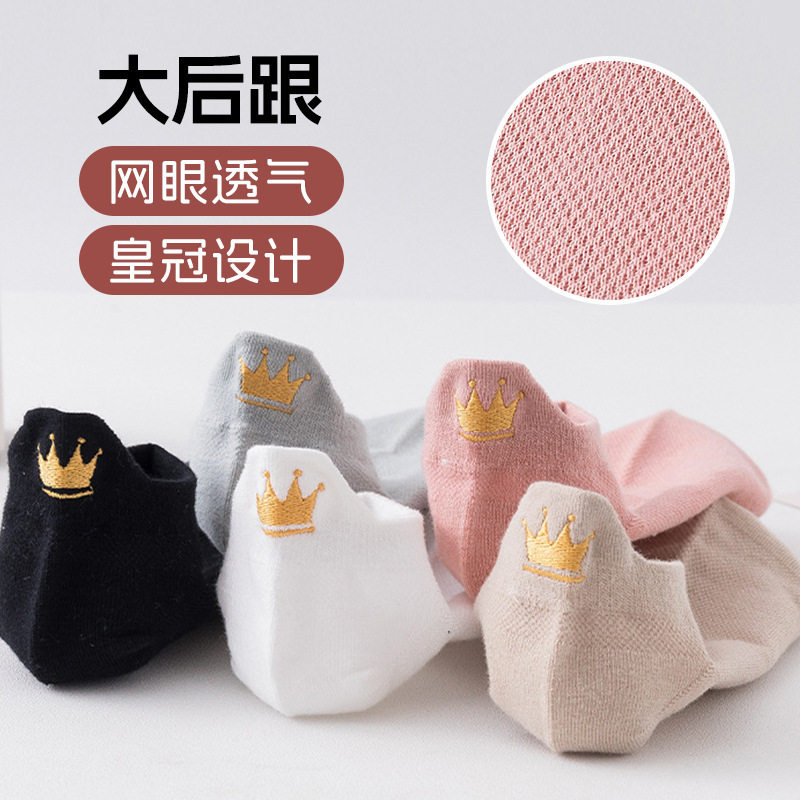 皇冠船袜女网眼短袜夏天薄款潮浅口短筒袜子提花刺绣防臭透气女袜