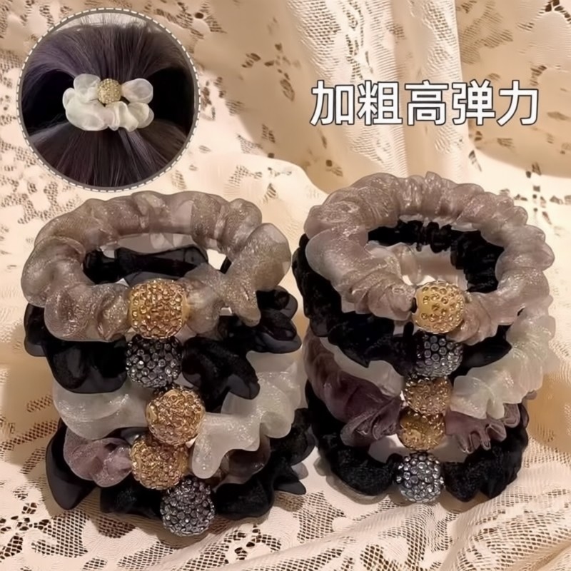 头绳女生成人水钻网纱扎头花发绳橡皮筋皮套发圈不伤发弹力大发饰