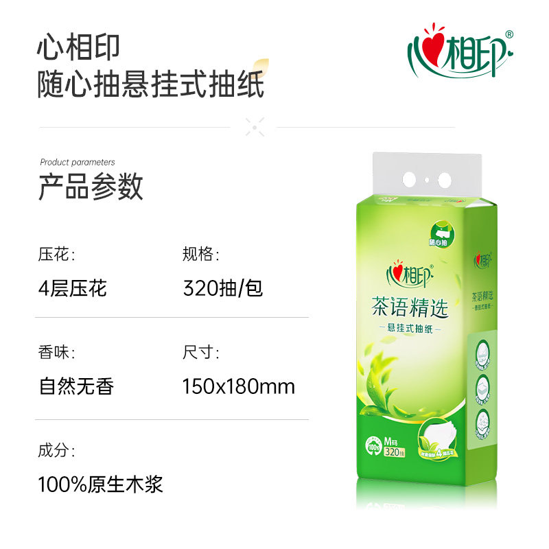 心相印悬挂式抽纸4层320抽4提整箱家用面巾纸餐巾纸擦手卫生纸巾