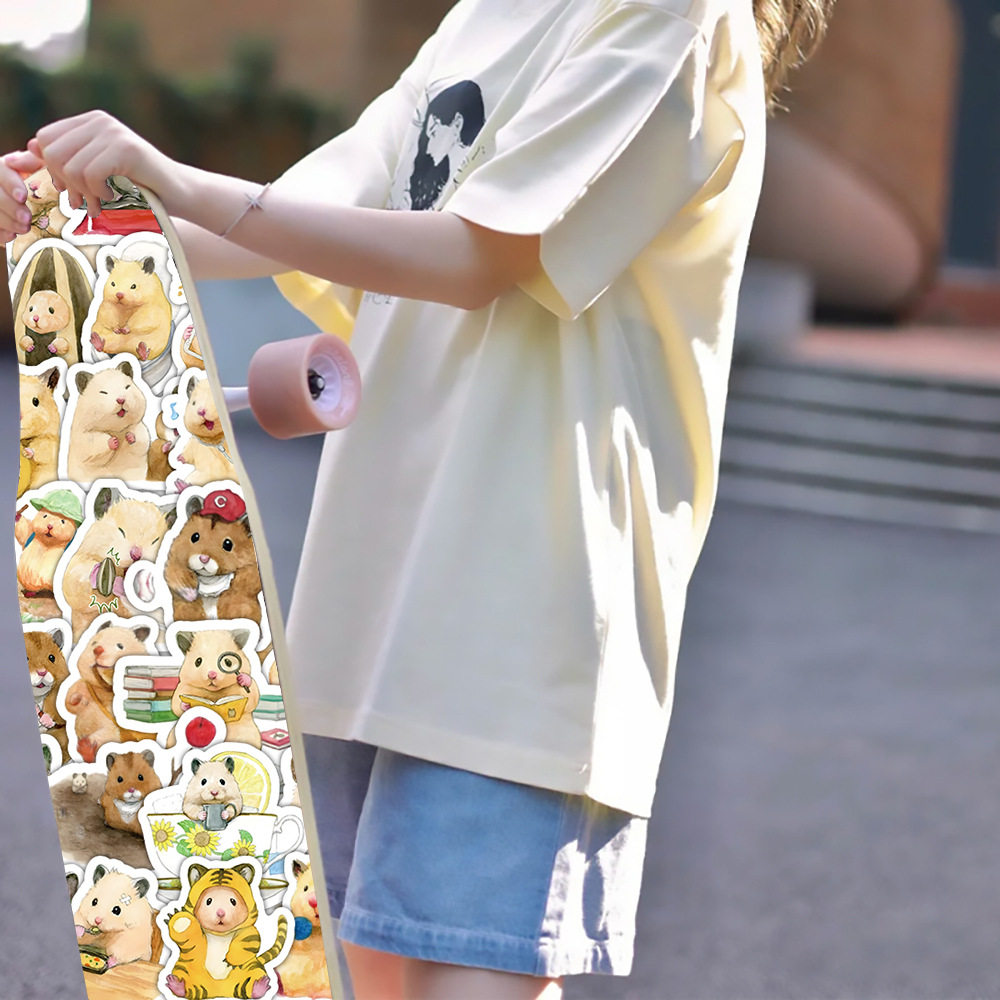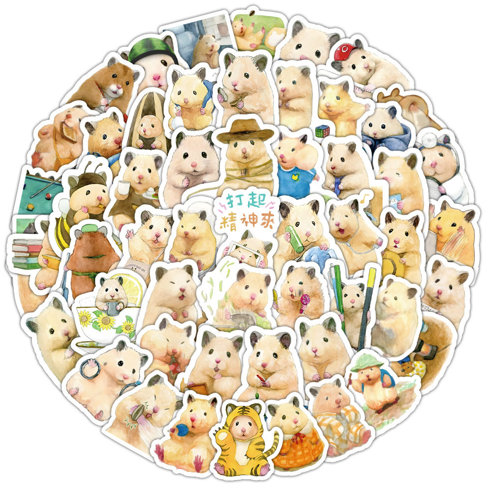 100张仓鼠贴纸卡哇伊小动物卡通创意手账本水杯桌面装饰防水贴画