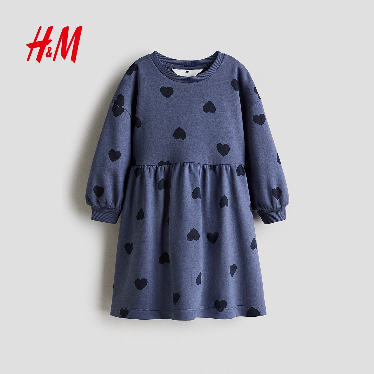 HM童装儿童女童裙子2025新款休闲大廓形卫衣面料连衣裙0984595