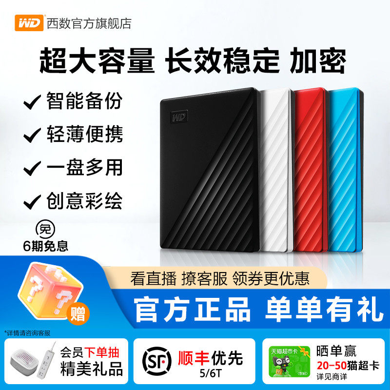WD西部数据移动硬盘5t加密6t机械2t电脑大容量6tb外置5tb高速存储