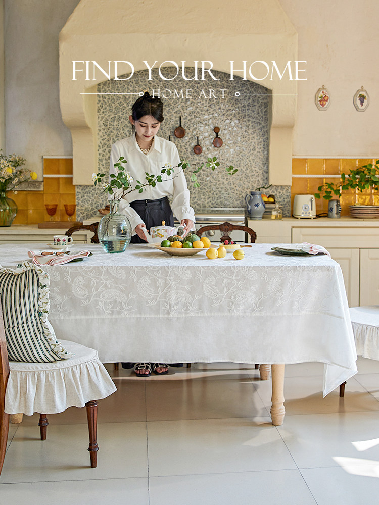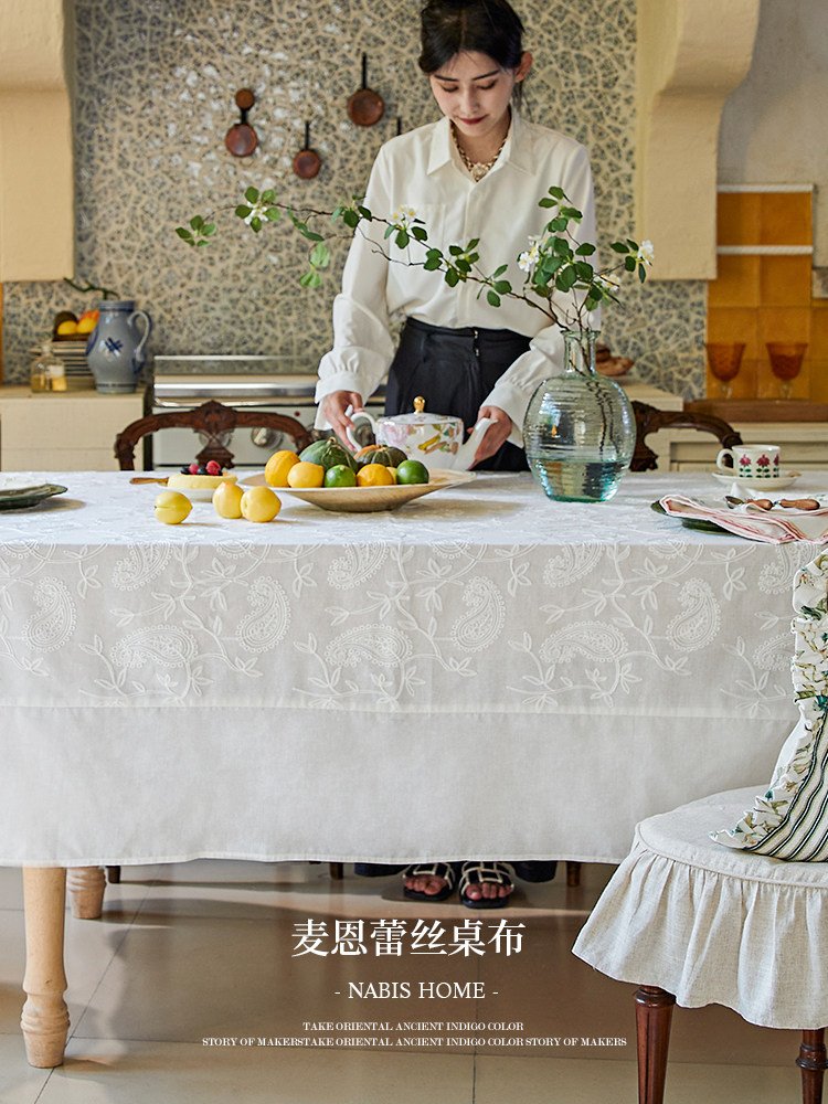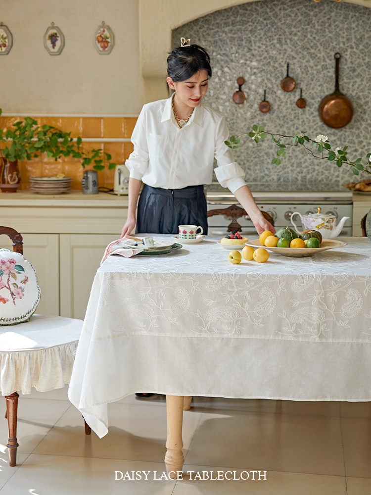 蜡笔派麦恩桌布绣花蕾丝法式简约现代轻奢高级感台布圆桌方形盖布