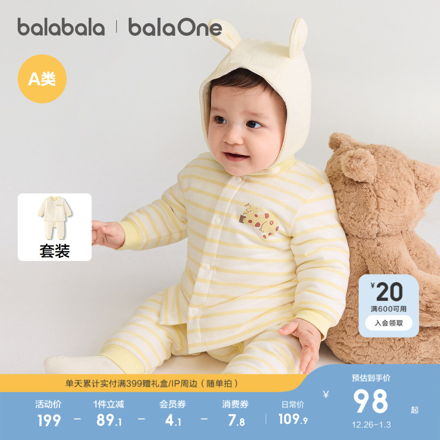 巴拉巴拉童装儿童内衣套装男童女童宝宝衣服家居秋衣2025新款夹棉
