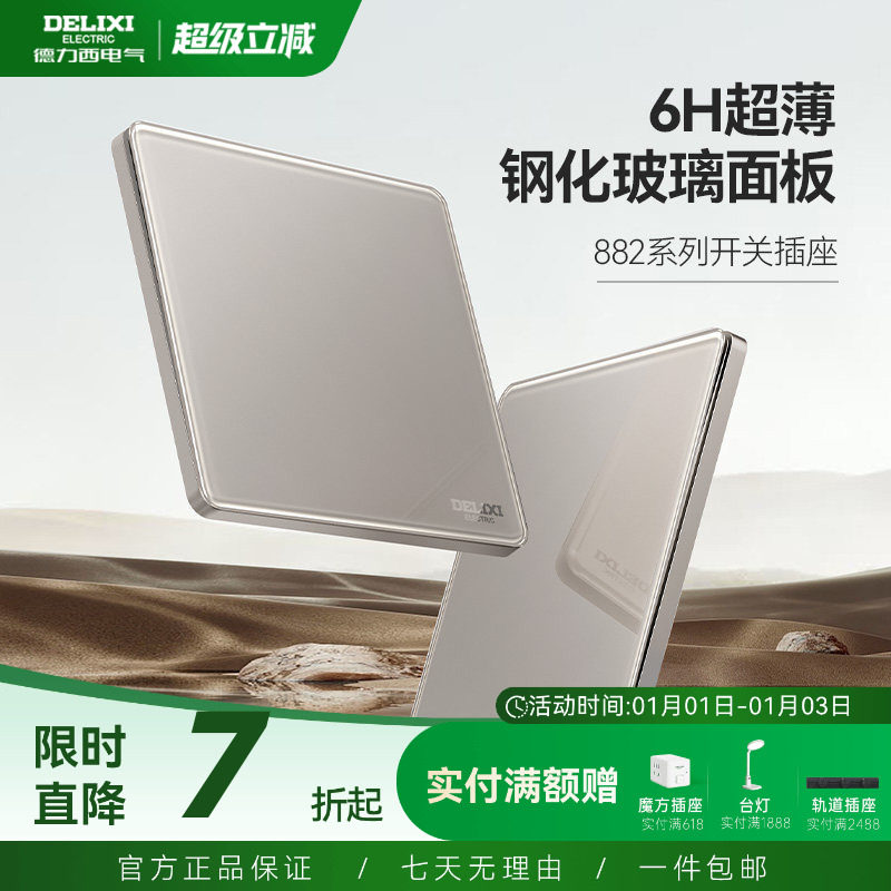 德力西旗舰店开关插座五孔家用墙开16A超薄钢化玻璃面板882砂陶棕