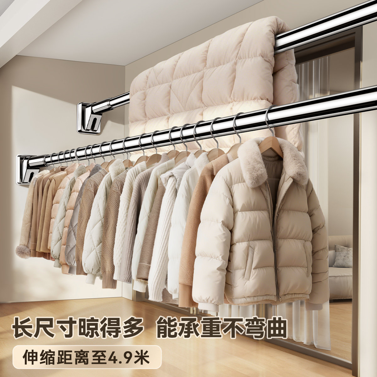 免打孔伸缩晾衣杆阳台家用伸缩窗帘杆晾晒神器不锈钢挂晒凉晾衣架