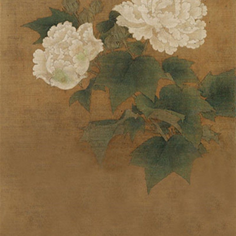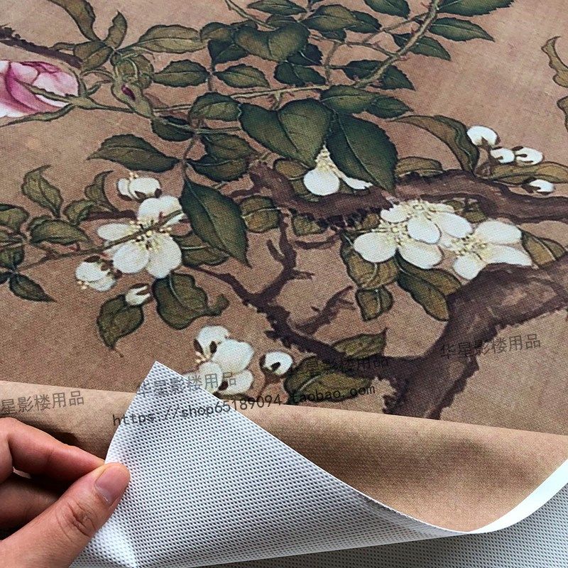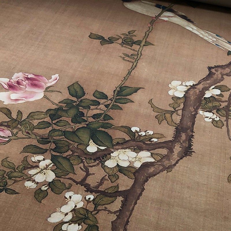 工笔中式婚纱背景布影楼复古旗袍情侣背景古装汉服摄影花鸟 牡丹