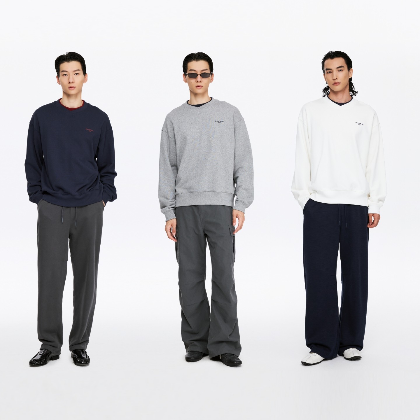 Oneup撞色假两件双层领套头灰色卫衣纯棉宽松重磅长袖上衣情侣款