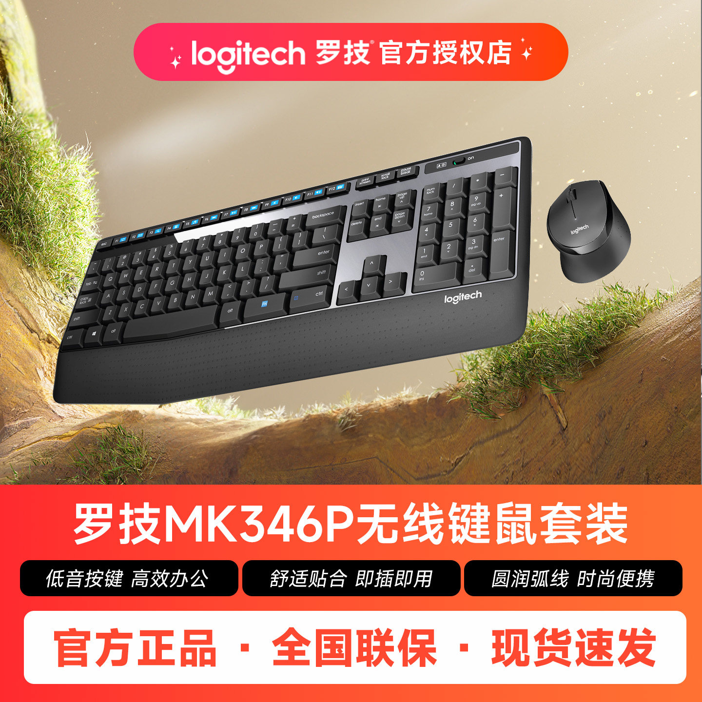 罗技MK346P无线键鼠套装办公家用笔记本电脑鼠标键盘腕托MK345