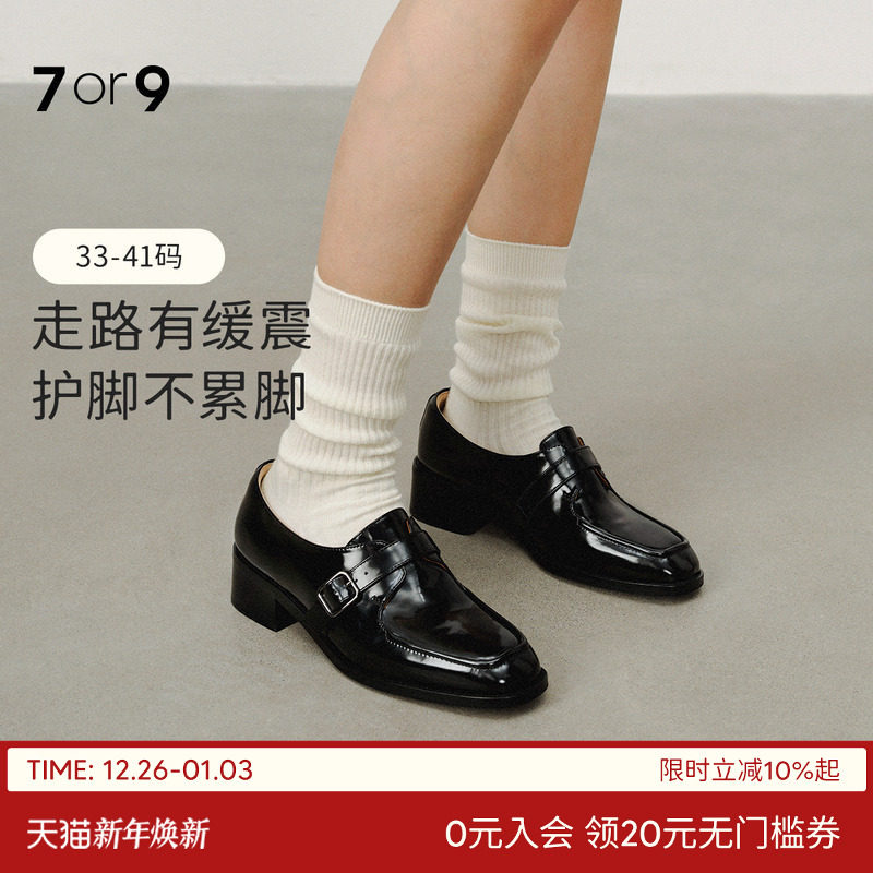 7or9厚底乐福鞋女鞋秋冬黑色增高英伦风小皮鞋一脚蹬单鞋竹炭司康