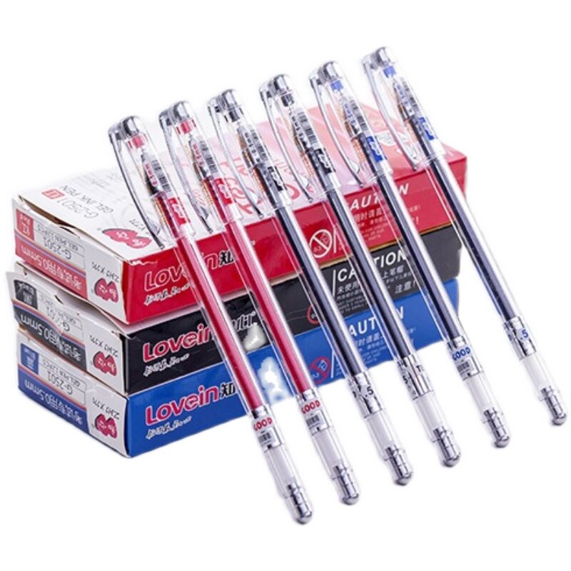知心中性笔2501全针管0.5水性笔学生考试 办公财务用红蓝黑签字笔