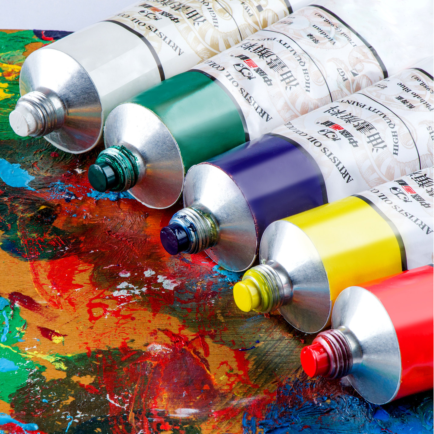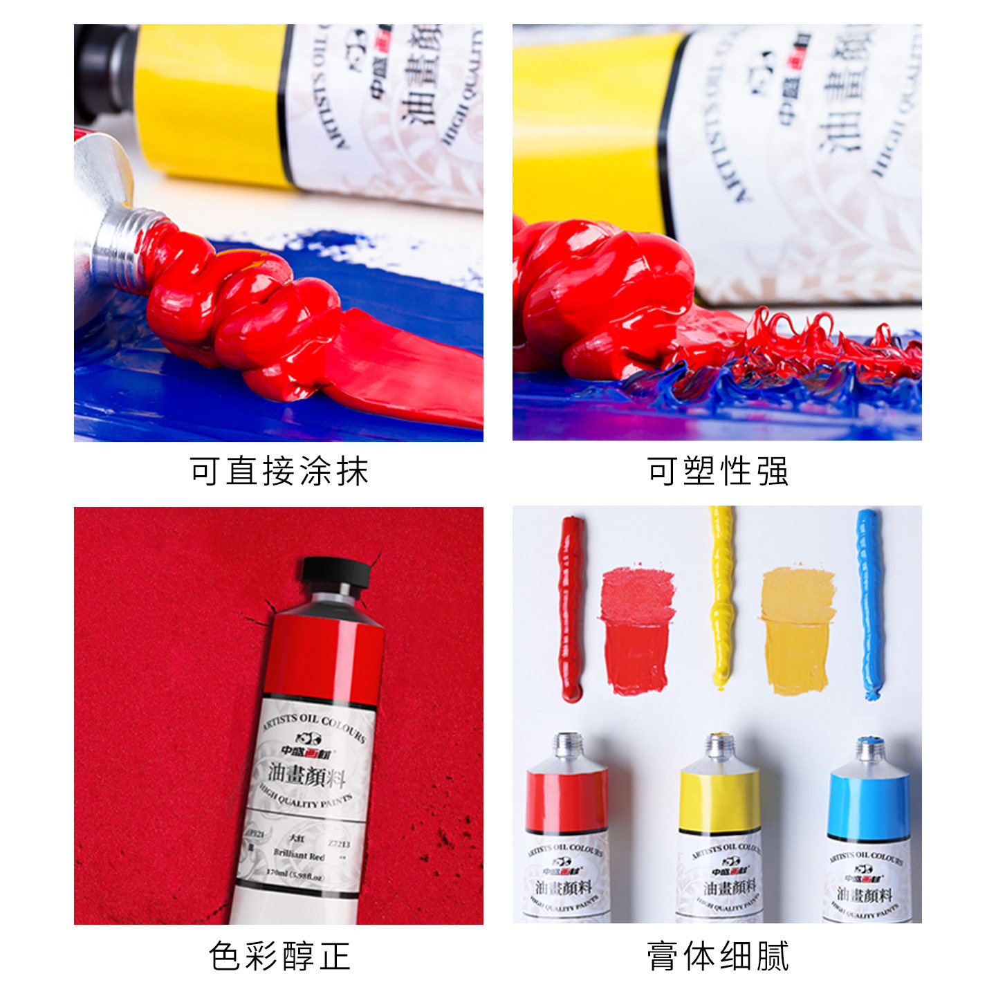 中盛画材 油画颜料油画套装油画布材料画画套装工具颜料美术染料油画用品美术绘画写生白色灰色红色170ml