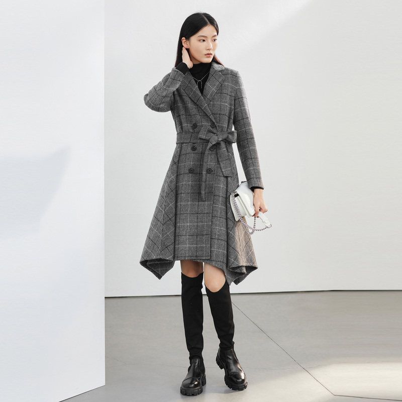 【专柜正版】高端双面羊毛羊绒毛呢大衣双排扣毛呢外套时尚洋xz12