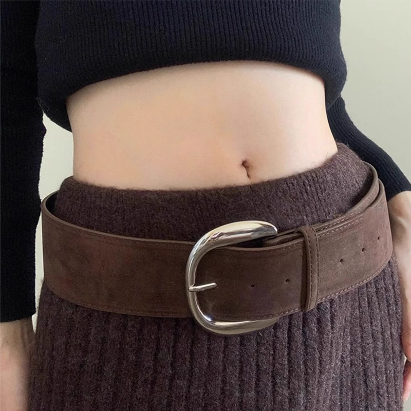 小众复古个性麂皮绒面宽边腰带网红同款时尚百搭皮带裤带装饰腰封