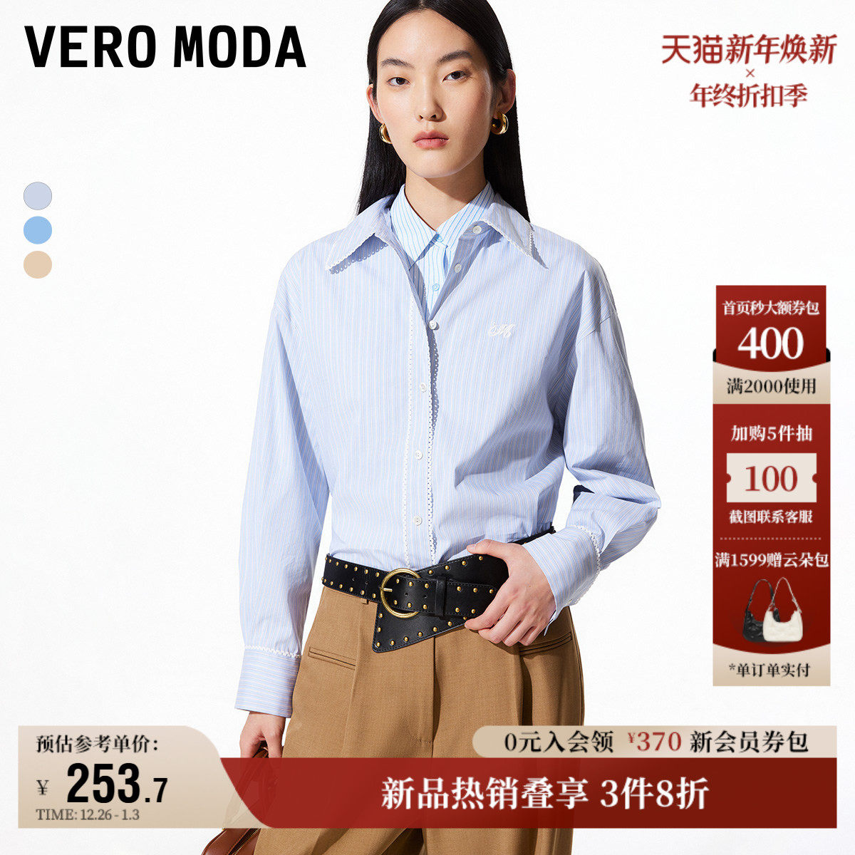 Vero Moda奥莱衬衫女2025秋季新款商场同款木耳边领带学院条纹