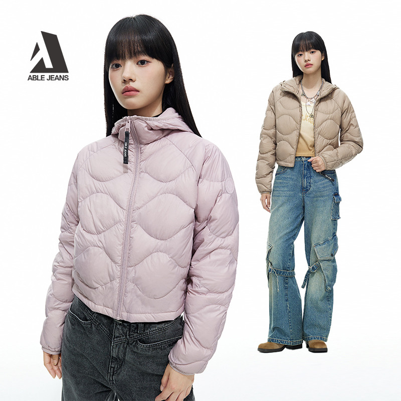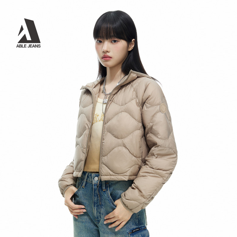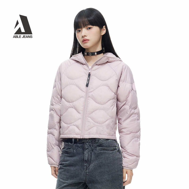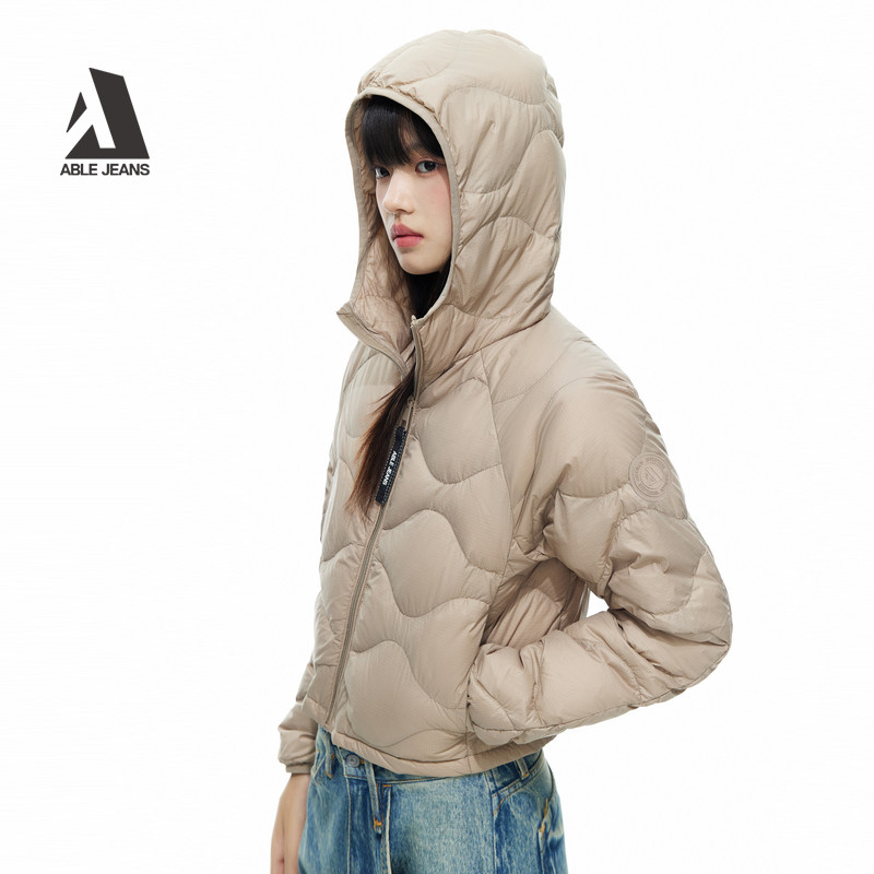 ABLE JEANS冬季新款女士舒适时尚超轻连帽轻薄羽绒服短款90鸭绒