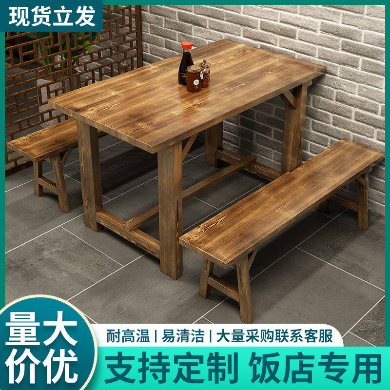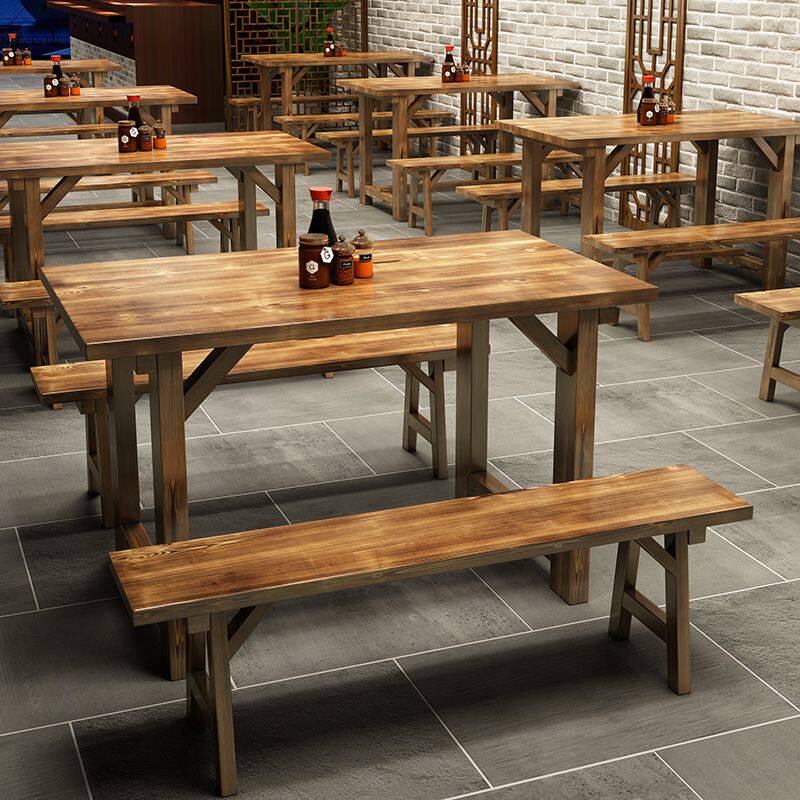 2025新实木碳化饭店桌椅餐厅快餐桌椅面馆小吃烧烤火锅店商用餐桌