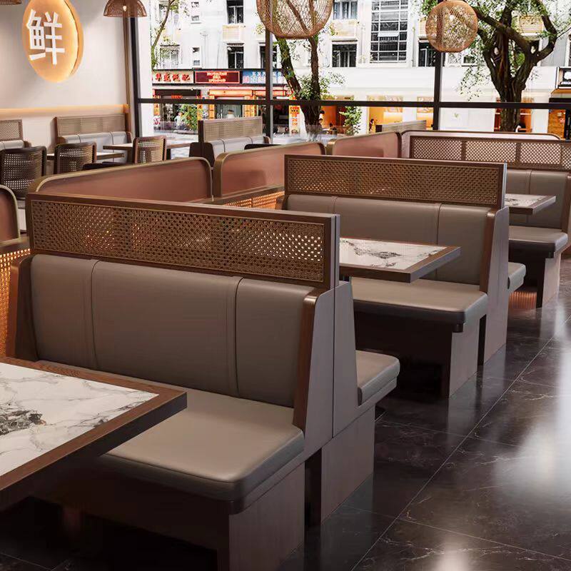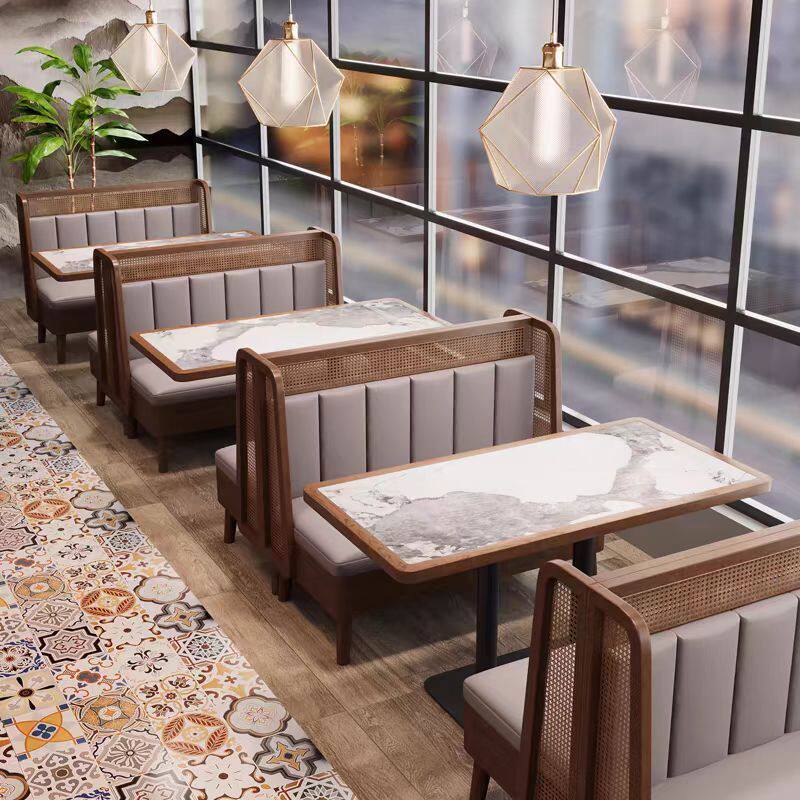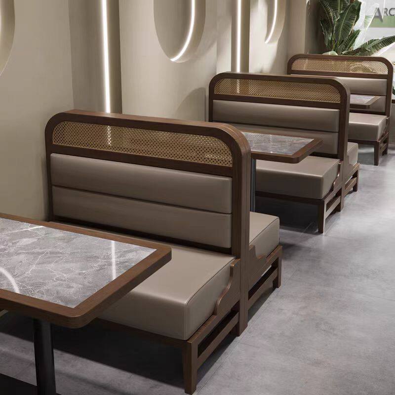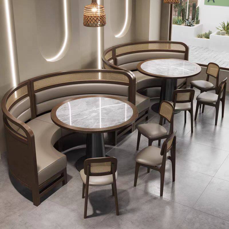2025新商用主题餐厅实木藤编岩板桌椅组合咖啡厅西餐厅火锅店烧烤