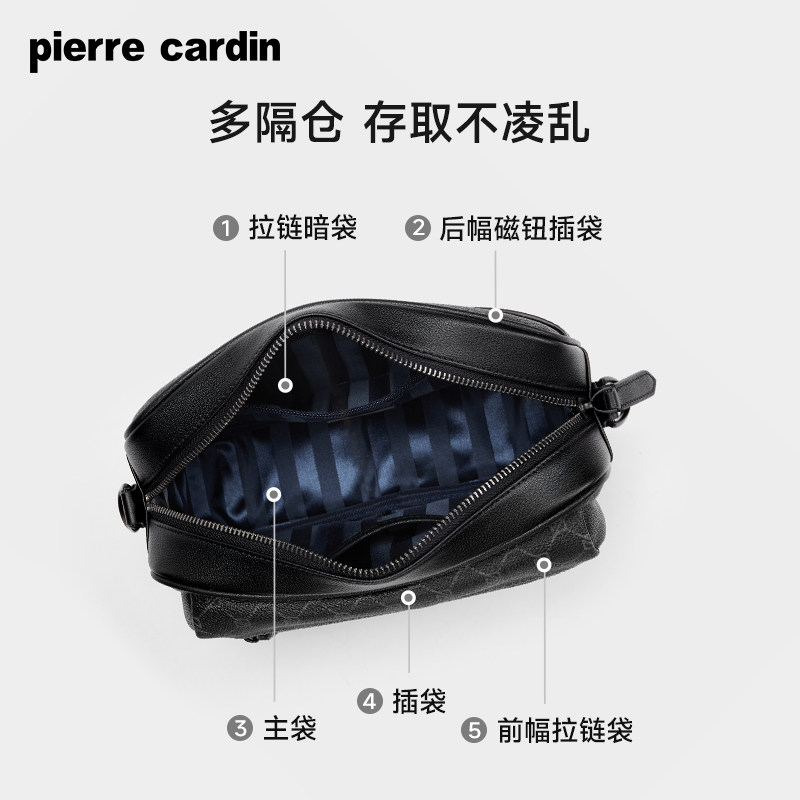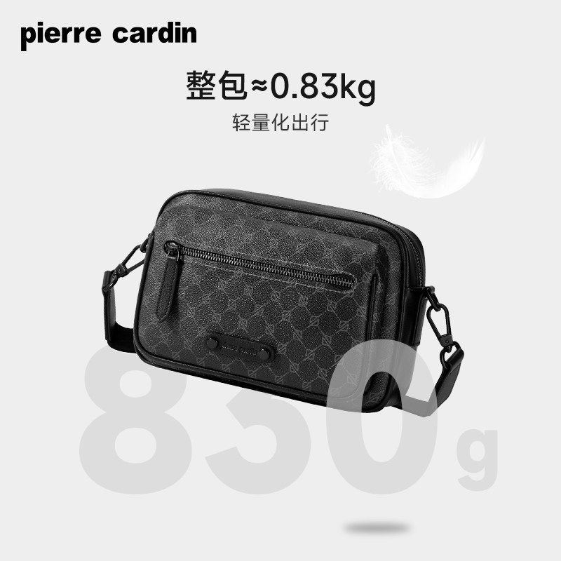 皮尔卡丹男包单肩斜挎包时尚潮流男士邮差包商务休闲PVC老花挎包