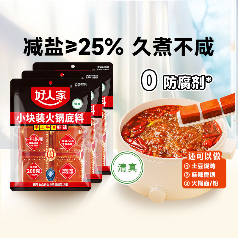 好人家麻辣牛油小块200g手工老火锅底料麻辣香锅调料底料麻辣烫